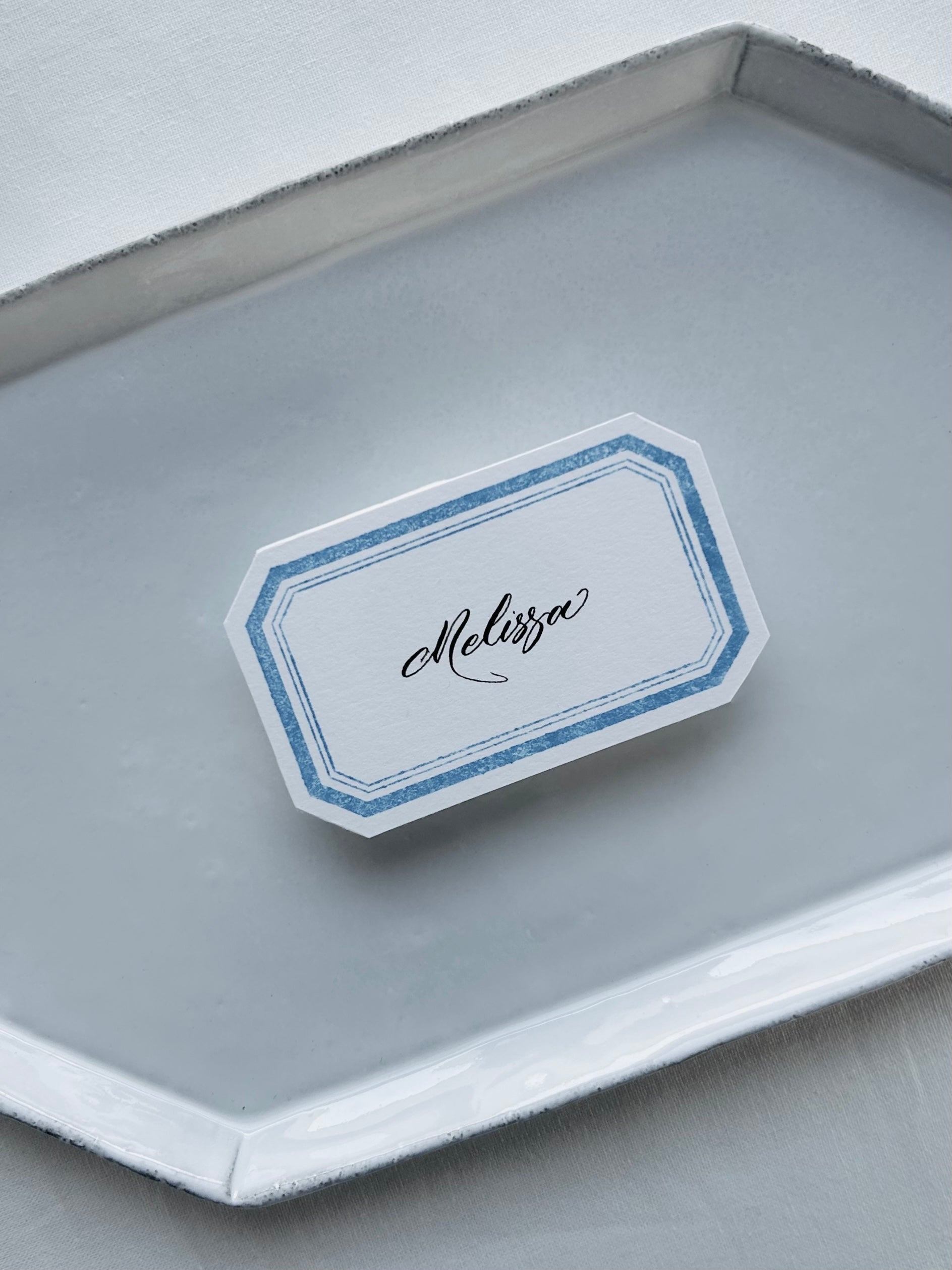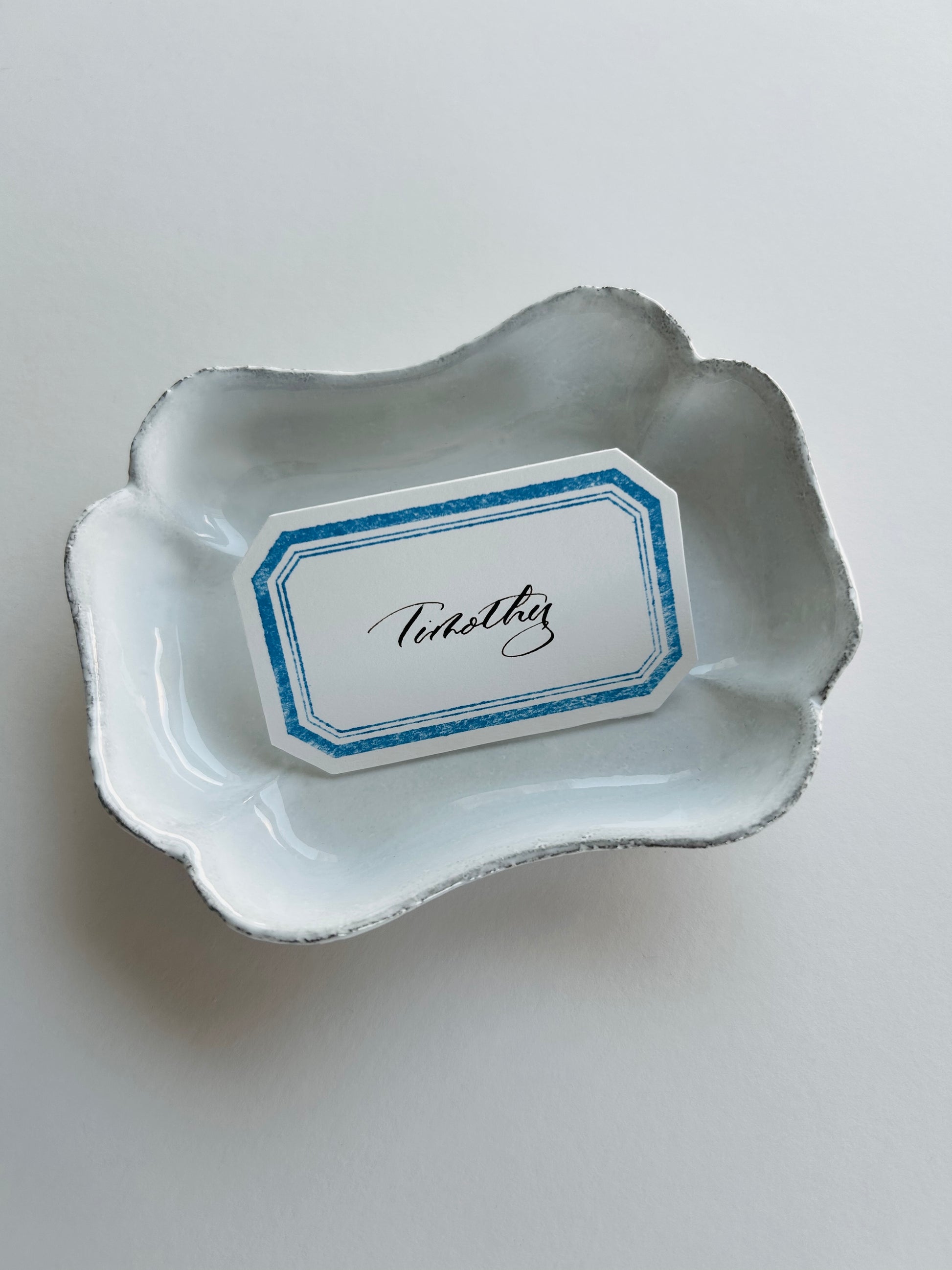 Introduce a refined, vintage-inspired charm to your table setting with our Blue Frame Die-Cut Place Cards. Each card is individually crafted by hand, featuring a delicate blue border and a softly textured finish that evokes an effortless, timeless elegance.